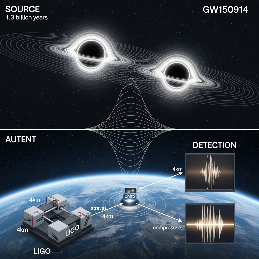 수십 년간의 준비와 개선 끝에, LIGO는 2015년 9월, 훨씬 더 향상된 성능의 '어드밴스드 LIGO(Advanced LIGO)'로 업그레이드되어 공식 가동을 시작할 준비를 하고 있었습니다. 그리고 운명처럼, 공식 가동 시작 며칠 전인 2015년 9월 14일, 두 관측소의 컴퓨터에 정확히 똑같은 파형의 신호가 거의 동시에 기록되었습니다.