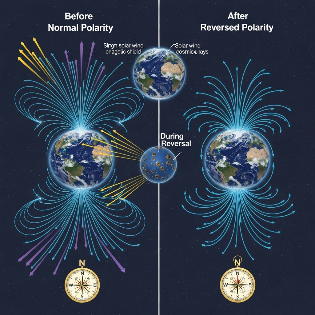 지구 자기장 역전: 나침반이 남쪽을 가리키던 그날, 우리는 안전할까?