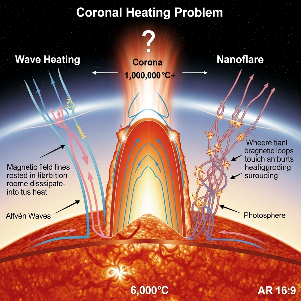 태양 코로나 가열 문제: 왜 태양 표면보다 대기가 수백 배 더 뜨거울까?